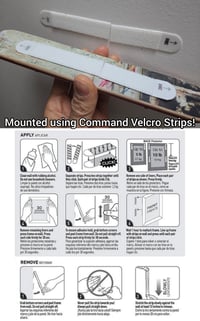 Each hanger uses two sets of strips (provided but not installed) that can hold approximately 5 pounds when hung vertically.